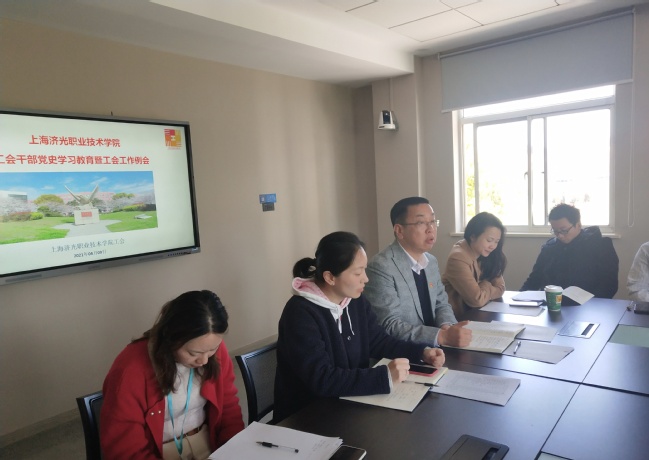 为落实学院党委《关于开展党史、新中国史、改革开放史、社会主义发展史学习教育的实施方案》,工会邀请学院副院长、工会主席王云飞为工会干部作“学党史、开新篇”主题报告,他强调今年是中国共产党成立一百周年的重要历史时间节点,工会工作要在学院党委的领导下,把“四史”学习教育贯穿工作始终,工会干部要从党史中汲取能量,不忘历史、不忘初心,并把学习教育落实到具体工作中去。