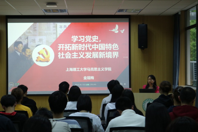 我们这个时代是否需要理想信念?4月21日晚上6:00图书馆多功能视听室,第四期“青年马克思主义学习班”第三次集中理论学习课上,上海理工大学马克思主义学院院长、博士生导师、中国马克思主义哲学史学会理事、上海市习近平新时代中国特色社会主义研究中心研究员、上海市高校思政课教师名师工作室主持人、上海市高校思想政治理论课教师“拔尖人才”、上海市马克思主义理论教学研究“中青年拔尖人才”金瑶梅教授以“学习党史,开拓新时代中国特色社会主义发展新境界”为主题为从中国共产党历史出发,讲述了新时代中国特色社会主义发展新境界,让青马学员在学习党史过程中认识到青年人在实现中华民族伟大复兴中国梦过程中的使命与担当,思政部教师、第四期“青马班”成员参与聆听,其中杨浦校区的青马学员通过雨课堂平台同步观看本次课程直播。