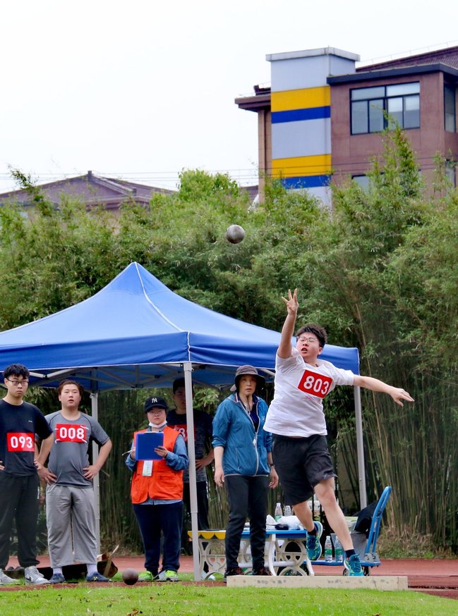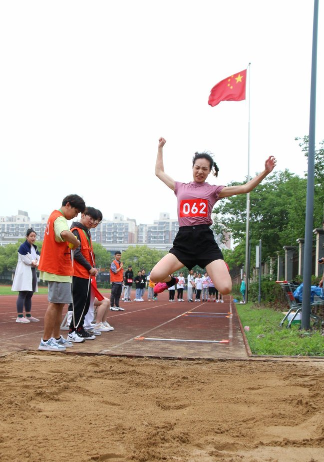 本次运动会阵容再创新高,共有1398人参与开幕式表演,学生运动员723人,教工运动员267人,运动会总参与人次达2200。赛场上,选手们个个精神抖擞,顽强拼搏;场下,欢呼声、加油声此起彼伏,各项比赛现场气氛热烈,高潮迭起,大家尽情享受运动和竞技带来的喜悦和感动,体会竞技运动与团队合作的双重快乐。本次运动会上,学生男子100米项目中来自金融专业的程思睿同学以11秒43打破该项目校运会记录,来自助产专业的童欣怡同学以4米35的好成绩打破学生女子跳远校运会记录,建筑系教师陈仙鸿在教工男子组铅球比赛中以10米91的好成绩打破校运会记录。