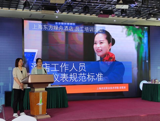 活动伊始,东方绿舟综合办副主任倪海玲女士对济光学院经管系师生的到来表示热烈欢迎,经管系系主任张迺英教授对东方绿舟热情周到的接待表示由衷感谢。酒店邮轮专业主任林俊老师在随后的礼仪讲座中,针对酒店工作人员的仪容仪表进行了规范化培训。
