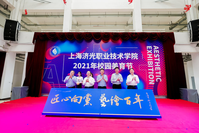 会后,全体与会人员共同观摩了我院2021年校园“美育节”开幕式,上海市教卫工作党委副书记、市教委副主任闵辉,市民办高校党工委副书记王庆,同济大学党委常务副书记冯身洪与我院院长李永盛、党委书记姜富明一起为“匠心向党艺绘百年”同济-济光师生文创作品展启动沙画。