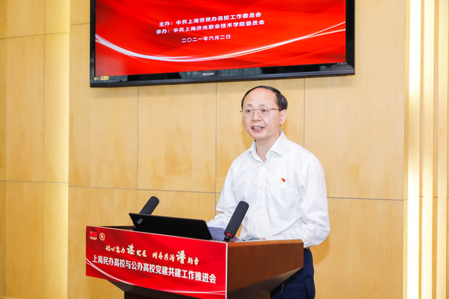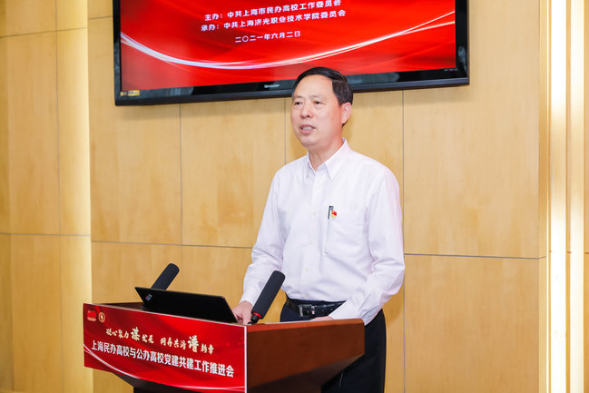 2021年6月2日,上海市民办高校党工委在我院召开了上海民办高校与公办高校党建共建工作推进会,进一步总结和梳理上海民办高校党建共建经验。上海市教卫工作党委副书记、上海市教委副主任闵辉,同济大学党委常务副书记冯身洪,上海市民办高校党工委副书记王庆出席了会议,上海17所民办高校党委书记、相关职能部门负责人参加了会议。本次会议由我院承办,党委书记姜富明主持。