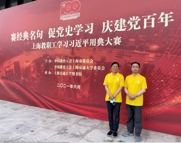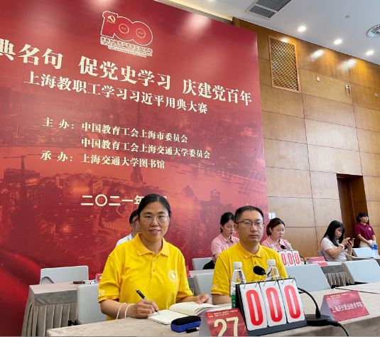 为庆祝建党100周年,以赛促学推动党史学习教育,以学促行奋进新时代新征程,2021年6月18日,由上海市教育工会、上海交通大学工会主办,上海交通大学图书馆承办的“赛经典名句,促党史学习,庆建党百年”上海教职工学习习近平用典大赛复赛在上海交通大学闵行校区文博楼举行。我院选派建工系方圳海老师、思政部田巧玲老师参加了本次比赛。本次比赛共吸引了全市高校系统、普教系统及教委直属单位的72支参赛队伍,总计234名选手参加。