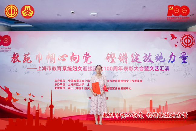 为了庆祝建党100周年,由上海市教育工会、上海市教育系统妇工委主办,上海师范大学、上海戏剧学院承办的“教苑巾帼心向党 铿锵绽放她力量”上海市教育系统妇女迎接建党100周年表彰大会暨文艺汇演于2021年6月20日在上海师范大学音乐厅隆重举行。我院工会常务副主席王滟、上海市教育系统三八红旗手李娜应邀出席。