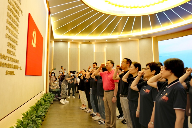 党员分为2条路线,分别学习参观中国共产党代表团驻沪办事处纪念馆、孙中山故居纪念馆、韬奋纪念馆、《新青年》编辑部旧址,最后集合在中共一大会址纪念馆共同参观。重温红色记忆,凝聚前行力量。最后在纪念馆内,党委书记姜富明带领党员面向党旗庄严宣誓,“我志愿加入中国共产党,拥护党的纲领,遵守党的章程……”党员们纷纷高举右手、紧握拳头,重温入党誓词,牢记党员职责和使命。