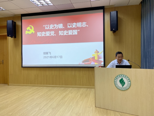 2021年6月17日,建工系、建筑系、学前教育系、机关第二党支部开展党史学习教育专题党课。胡展飞院长作《以史为镜、以史明志,知史爱党、知史爱国》专题报告。