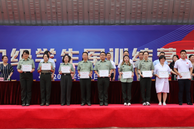 学院党委副书记刘丽宣读了《关于表彰2020级学生军训优秀营员、优秀连队、优秀教官及优秀随训教师的决定》。主席台领导分别为获奖个人和集体进行了颁奖。党委书记姜富明向海梵教育教官团队赠送锦旗,表示学校衷心的感谢并致以崇高的敬意。