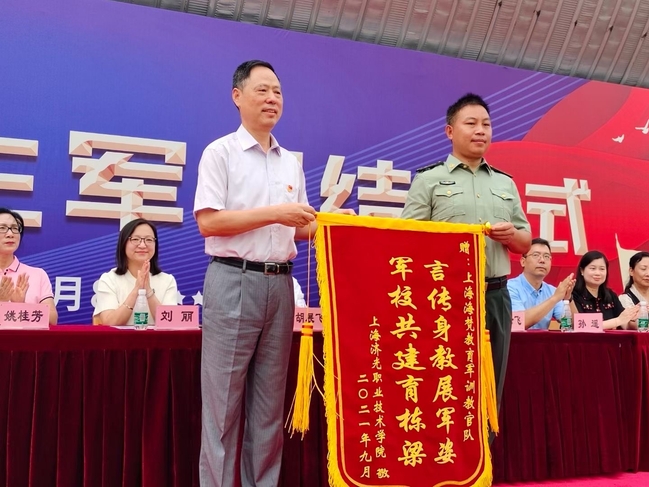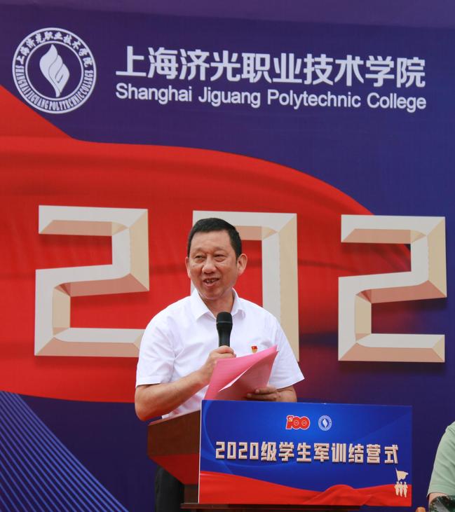 院长胡展飞代表学校向本次承训的上海海梵教育全体教官们表示诚挚的感谢,向全体随训教师、后勤服务教职员工致以亲切的问候,向圆满完成军训任务的所有参训学生致以衷心的祝贺。胡院长在讲话中表示,希望同学们以本次军训为起点,把军训中饱满的热情、顽强的毅力、必胜的信心化成奋进的动力,积极投入到充满挑战和富有希望的学习和生活中去,努力拼博、奋发进取,秉承伟大的建党精神,传承爱国心、强国志,用优异成绩书写报国新华章。