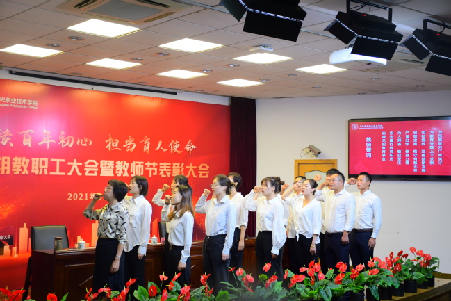 本次新学期教职工大会暨教师节表彰大会的召开,体现了学院尊师重教的优良传统。学院号召全体教职员工奋发有为,勇担时代使命,锐意进取,向身边的教书育人楷模和优秀教职员工看齐,以勤奋耕耘孕育万千桃李,用育人情怀涵养世代英才,用辉煌的成绩为党和国家的教育事业、新时代的职业教育发展贡献力量。