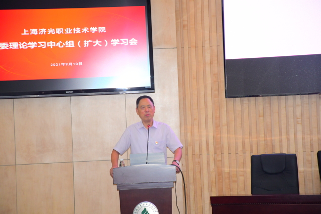 姜富明书记以中国近代史看中华民族、中国共产党的初心与使命、我们中国共产党为什么能、汲取智慧和力量开创新局五个方面,深刻阐述了学习七一讲话的核心要义,从历史发展角度梳理总结了中国共产党诞生到发展壮大、带领中华民族走向复兴的必然,全面总结了党史学习的重要意义,以及具体到济光党员干部如何把伟大建党精神融入人才教育培养,贯穿到干事创业各个方面,办好现代职业教育的努力方向、发展战略和发展战术。他指出,建党百年庆典盛况空前,彰显了党的伟大、自信、力量和蓬勃生机,“七一”重要讲话提出了以史为鉴、开创未来“九个必须”的根本要求,向全体中国共产党员发出了催人奋进的伟大号召,吹响了坚持和发展中国特色社会主义、向第二个百年奋斗目标进军的号角,为奋进新时代、走好新征程进一步指明了前进方向,提供了根本遵循。他号召,学院上下要把认真学习贯彻习近平总书记“七一”重要讲话精神作为重大政治任务,作为党史学习教育的核心内容,从党的百年奋斗史中汲取前进的智慧和力量,开启新征程、书写新奇迹;始终不忘为党育人、为国育才使命,坚持把落实立德树人根本任务,培养担当民族复兴大任的时代新人贯穿于各项改革发展任务始终;始终与师生员工想在一起、干在一起、风雨同舟、同甘共苦,把济光建成更强、更优、更特,为实现内涵式高质量发展,实现学院“十四五”发展目标奋斗,共同树立“功成不必在我、功成必定有我”境界。