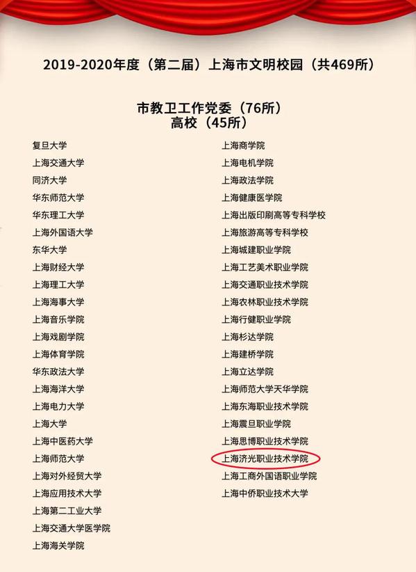 市文明办在4月27日公布了沪文明城区、行业、文明单位、文明校园名单。我院被评为2019-2020年度(第二届)上海市文明校园,这是我院精神文明建设工作取得的又一大标志性成果。