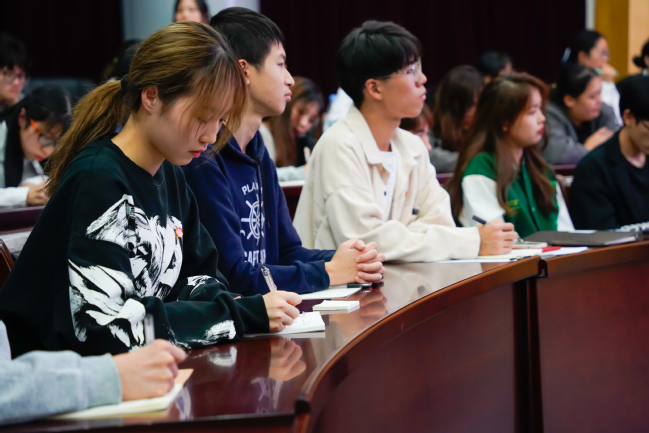 “学以致用,方为学。理论学习是基础,知行合一是关键。”讲座中,万立明教授首先介绍了习近平总书记“七一”讲话的背景,提到了可以从三个方面学习领悟习近平总书记“七一”讲话的重要意义。他认为,“七一”讲话是对党的百年征程和百年成就的科学总结,中国共产党带领中华民族创造了新民主主义革命的伟大成就,实现了救国大业;创造了社会主义革命和建设的伟大成就,完成了兴国大业;创造了改革开放和社会主义现代化建设的伟大成就,开创了富国大业;创造了新时代中国特色社会主义的伟大成就,迈向了强国大业。他提出,要把握习近平总书记“七一”讲话的整体内容要紧紧围绕实现中华民族伟大复兴这个主题,认真学习伟大建党精神和“九个必须”,继续发展当代马中国马克思主义、21世纪马克思主义,这是理解讲话的重要观点和亮点,他概括了“七一”讲话的七个“第一次”的意义。在讲课的过程中万教授以丰富的例子、凝练而有学理性的语言,运用历史唯物主义的观点、立场、方法全面深刻分析了习近平总书记“七一”重要讲话精神,给师生们上了一堂生动而深刻的马克思主义理论课,让学员们对青马学习班的目的和宗旨有了更进一步的理解和认识。