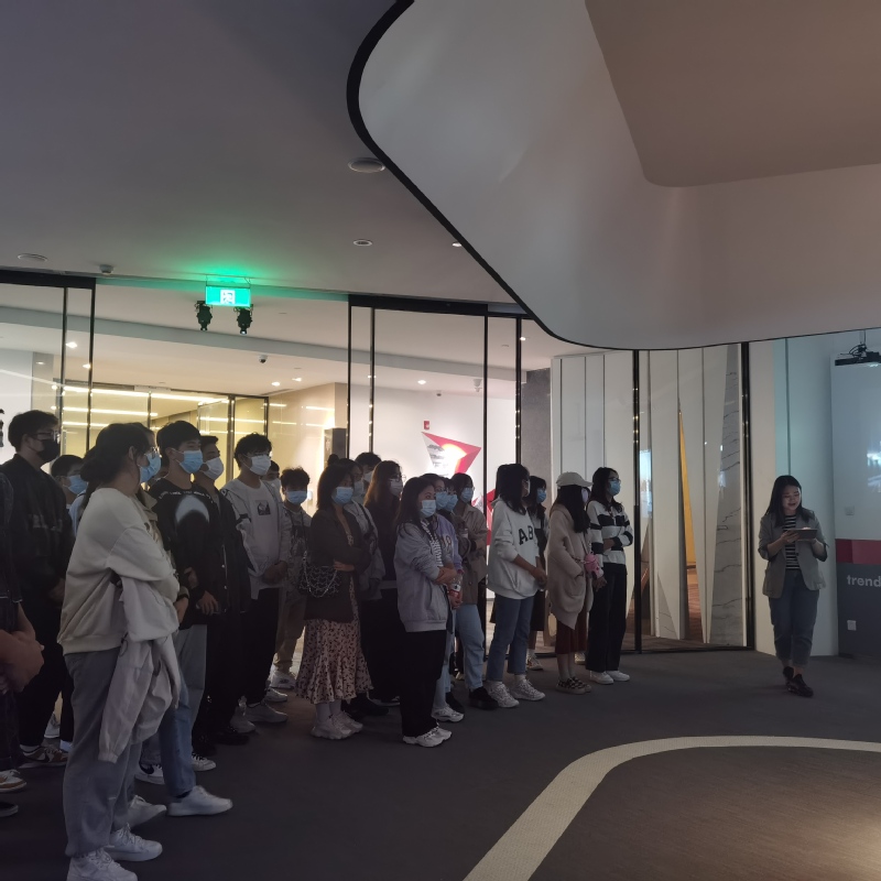 全筑集团人事主管袁经理代表集团人事部对二期订单班的同学表示了热烈欢迎,并带领同学参观了全筑集团发展史展厅,为全体同学逐一介绍集团的发展史、优秀工程案例和各个事业集群的标志。之后讲座中,袁经理为同学们进行了职业规划辅导,并表达了对于双方校企合作未来发展的美好期望和祝愿,希望全筑集团能与“全筑班”互利共赢。随后2018级建筑室内设计和2019级建筑室内设计专业毕业生潘洪灵毛丽萍、李俊宏讲述了在全筑集团实习的感受和经验,并就同学们的提问一一做出详细的解答。