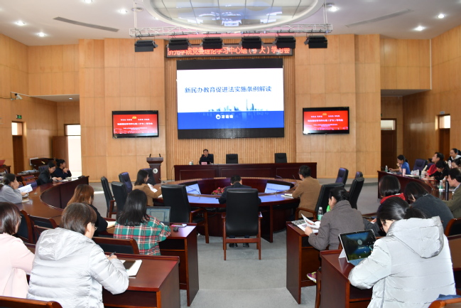 方建锋主任从民办教育发展情况、民促法实施条例修订的过程意义和原则、修订的主要内容等三个方面进行详细的解读。以大量案例、详实的数据阐述了新的民促法实施条例修订工作的必要性和现实意义,并结合具体内容详细分析了新《实施条例》修订的“加强党对民办学校的领导、完善举办民办学校制度、优化民办学校的组织与活动、 保障教师和受教育者权益、健全民办学校的资产与财务管理、加强民办学校管理与监督、完善对民办学校支持与奖励、明确违规行为的法律责”8项重点内容,引导学院干部教师深刻把握政策要义,提升法治意识和观念,进一步提升学院依法治校能力、推进学院治理体系和治理能力现代化,引导学院办学持续健康发展。