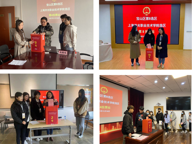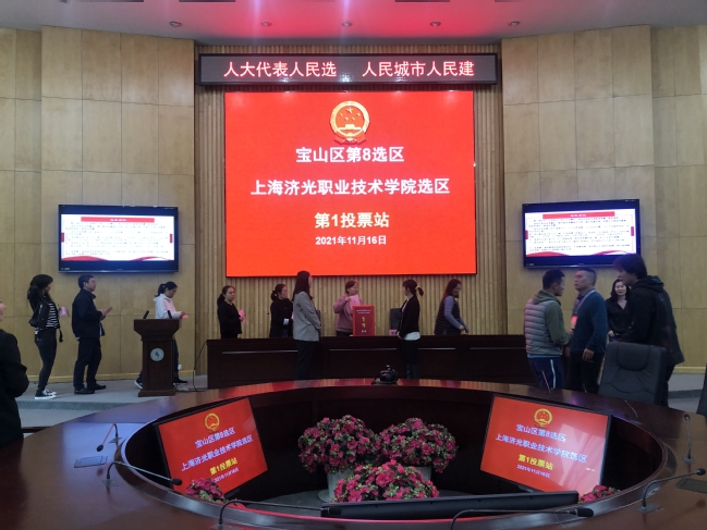 2021年11月16日是宝山区、镇两级人大代表换届选举投票日。我院所在选区为宝山区第8选区,根据宝山区选举委员会及杨行镇选举办的工作要求,学院精心部署和周密安排,登记选民6660人,参加投票选举选民6648人,参选投票率为99.82%。按照就近原则设立8个投票站,投票站工作人员严格按照选举程序检查票箱、校验选民证、发放选票,师生员工凭选民证依次领票、写票和投票,气氛庄严,秩序井然。