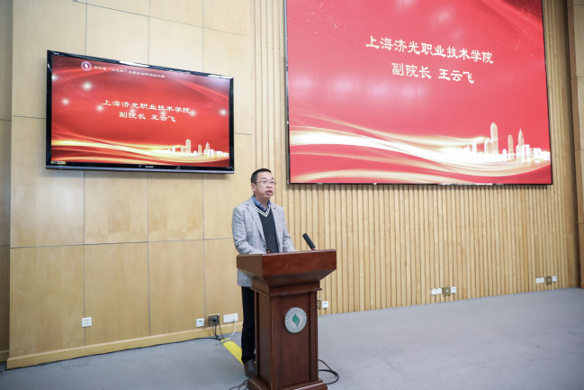 王云飞副院长会上发表了热情洋溢的讲话。他代表学院党政领导向支持和关心我校学生创新创业工作的领导、专家和老师表示衷心感谢。他指出,我院的大学生创新创业工作得到宝山区政府、人保局、杨行镇政府的高度重视和大力支持,去年同济创新创业控股有限公司与我校签订了合作框架协议,同济大学与济光学院资源共享,共同推进公办民高校党建共建新模式。上海闿和实业有限公司与我校签订了创业孵化合作协议,为济光学子实现青春梦想搭建更宽阔、更顺畅的实践锻炼平台。通过三区联动和公民共建,必将助燃济光学子的创新活力,赋能济光学子的创业梦想。