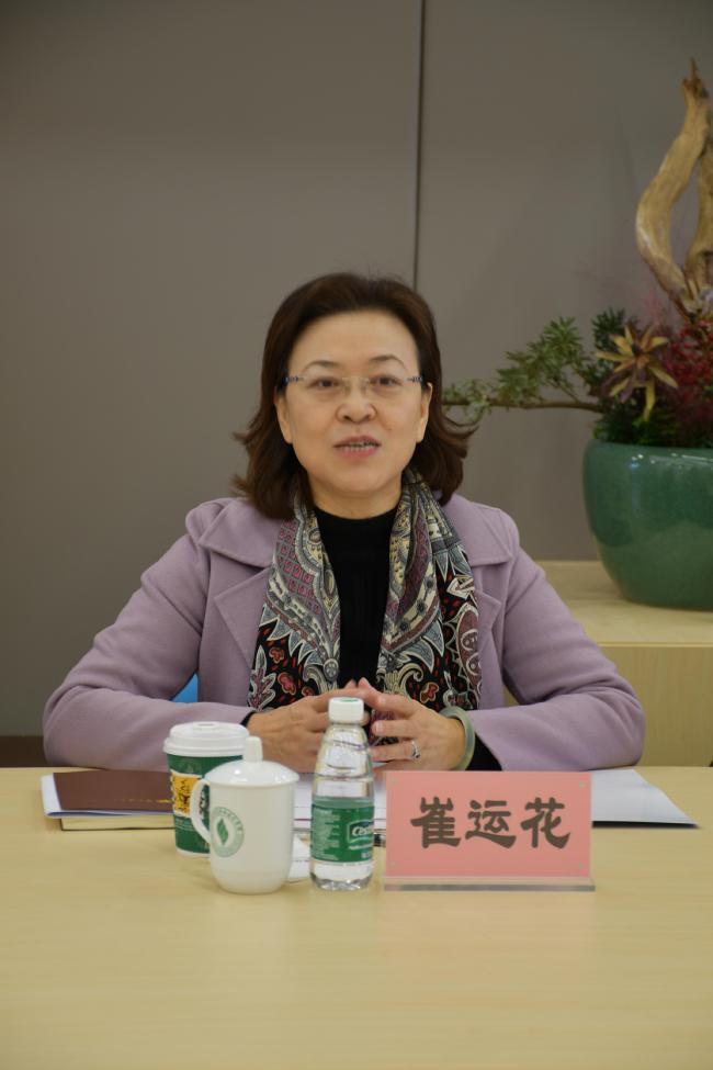 ▲调研小组组长、东华大学党委副书记崔运花主持会议