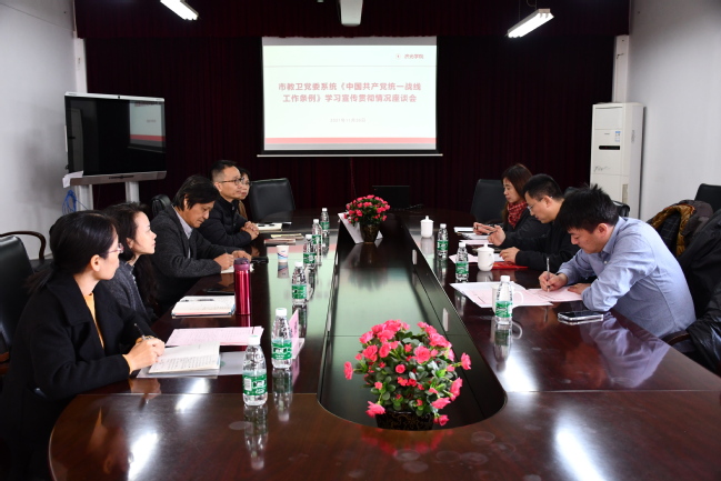 汇报会后,调研组分别召开职能部门负责人和党外人士及教师代表交流座谈,并查阅了工作台账。