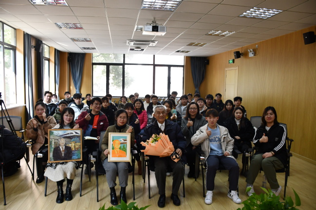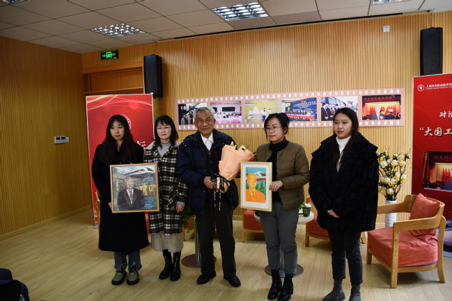 访谈之后,师生代表向吴祥明献上鲜花和自行创作的精美画作。最后,吴祥明与在场师生亲切合影。
