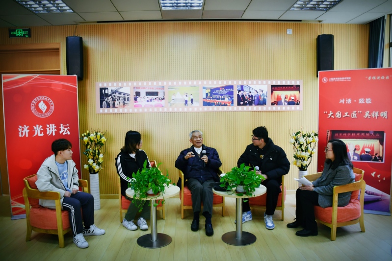 访谈中,吴祥明谈及自己和济光的缘分,他动情地说道:在同济大学退休教师协会筹建济光学院时,他参与了学院杨浦校区的选址和建设,担任了第一届济光学院董事会董事,多次为学院献计献策,见证了济光的“成长”,为学院的快速发展和喜人成绩感到高兴。他最后寄语现场师生:每个人经历都不会相同,但是奋斗精神是一致的,在座的师生们要做好迎接挑战的思想准备,今后大家会遇到更加复杂的难题、更加新颖的科技创新,这需要我们秉承创新精神去勇敢面对。