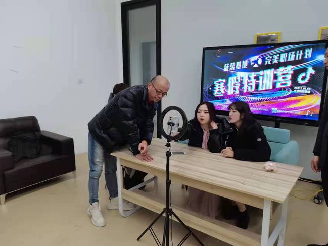 2022年1月8日,经管系直播电商“完美职场计划”寒假特训营在上海全金直播基地顺利开营。本次特训营由我校经管系产教协作中心联合上海市创意产业协会、校企合作单位上海靶控数字科技集团共同举办,同时得到了上海全金直播基地的大力支持。上海全金直播基地为学员提供了优质的后勤保障,宾馆级的住宿条件,先进的直播工作室和培训教室。本次实训将实现从课堂到特训、从课程到岗位、从实训到实干、从幕后到前台的无缝对接,也是学校电子商务专业与行业前沿企业之间产教融合、校企合作的进一步深化的有益探索。本次集训营是“完美职场计划”的第一站,在这里学员将直接与岗位对接,在摄影、剪辑、文案、主播、场控等多个岗位上轮岗锻炼,让每个学员体验直播电商全流程实操。