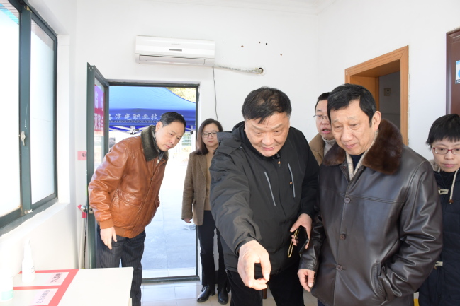 为进一步落实市教委关于防疫和安全工作的部署要求,2022年1月14日上午,校长胡展飞、党委书记姜富明、副书记刘丽、副校长王云飞带领后勤保卫处、学生处等部门组成的联合检查组开展校园防疫、安全大检查。