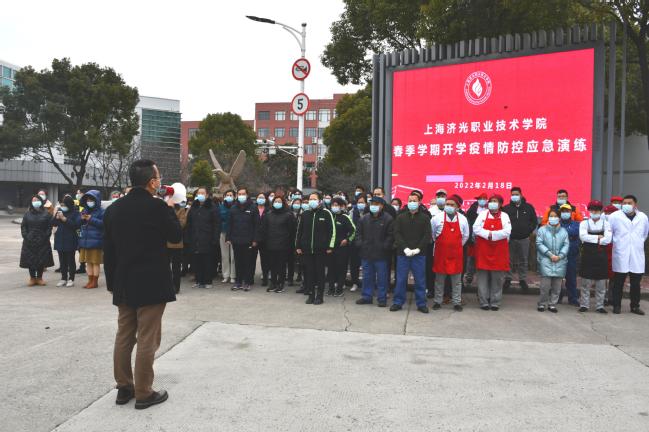 为进一步做好疫情防控期间开学各项准备工作,筑牢校园安全防线,切实保障2022年春季开学顺利进行,2月18日下午,我校开展了疫情处置应急预案演练。校长胡展飞、党委书记姜富明、党委副书记刘丽、副校长王云飞、校防疫工作领导小组成员、校办、宣传部、学生处、后勤保卫处以及各院系党组织书记、辅导员、食堂、宿管、驿站、超市工作人员参加演练。