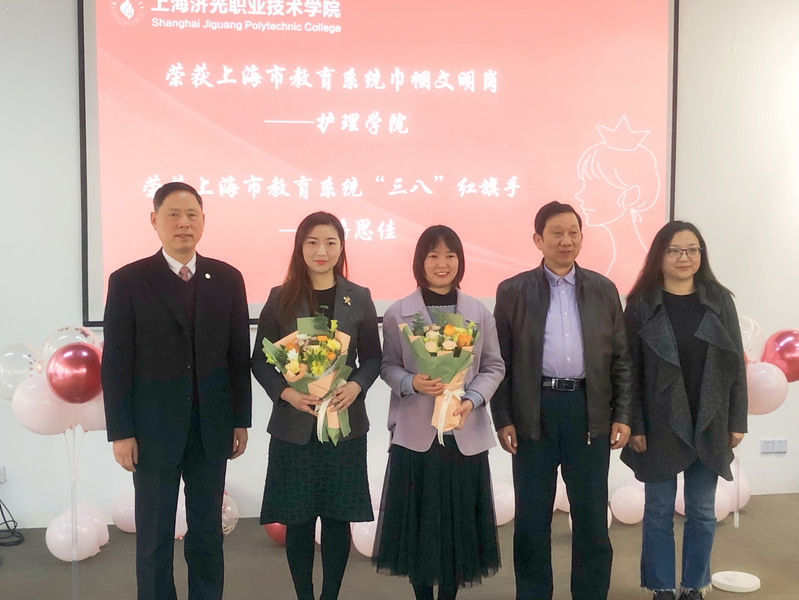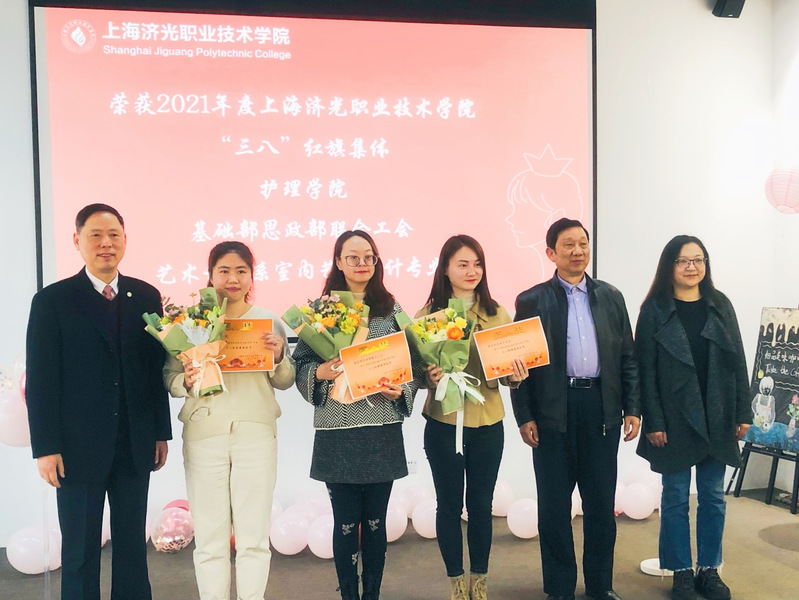 会上播放了教育系统“三八”红旗手、巾帼文明岗、校级“三八”红旗集体、“三八”红旗手的先进事迹视频。校工会常务副主席王滟宣读《关于表彰2021年度学校“三八”红旗集体、“三八”红旗手的决定》,学校领导分别为获奖的单位和个人颁奖。教育系统巾帼文明岗获得单位护理学院工会主席李丽颖,教育系统“三八”红旗手艺术设计系副系主任潘思佳作为代表先后作获奖感言。