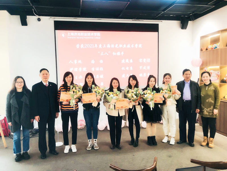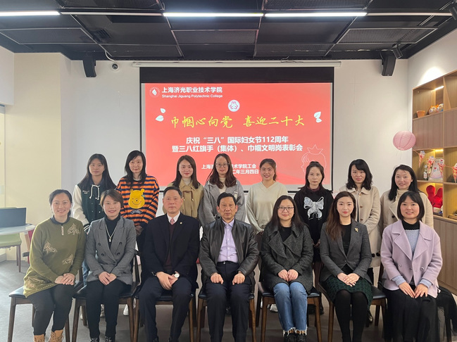 2022年3月4日,我校庆祝“三八”国际劳动妇女节暨表彰会在宝山校区咖啡厅举行。本次庆祝活动以“巾帼心向党,喜迎二十大”为主题,校长胡展飞、党委书记姜富明、党委副书记刘丽及女职工代表参加,大会由校工会副主席、女工委主任朱敏华主持。