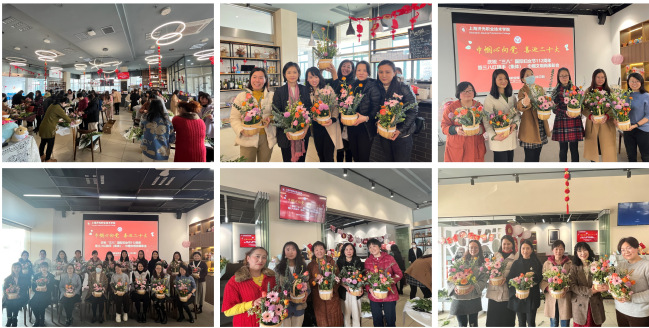 表彰会结束后,为庆祝“三八”国际劳动妇女节,校工会和女工委组织开展了“魅力巾帼,花样生活”现场插花制作活动。女职工们徜徉在花海世界,共赴春天的约会,大家纷纷表示,活动很有意义,既丰富了文化生活,舒缓压力,调节工作生活状态,提高工会成员美学素养及审美能力,又增进女职工之间交流,传递学校对女职工的关心关爱,感受到了幸福感和归属感,展示了我校巾帼们的风采。