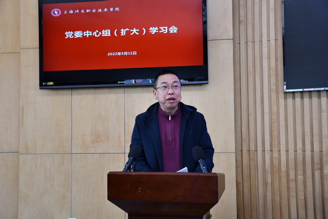 为进一步提升学校信息化水平,积极推进智慧校园建设,3月11日下午,我校召开党委理论学习中心组(扩大)学习会,信息中心主任方园老师以《信息化赋能学院的中心工作——现状、规划与重点工作》为主题作报告,会议由副校长王云飞主持。全体党委理论学习中心组成员、全体中层干部、专业主任、各院系部党政负责人、全体辅导员、各单位信息化建设工作人员出席本次会议。
