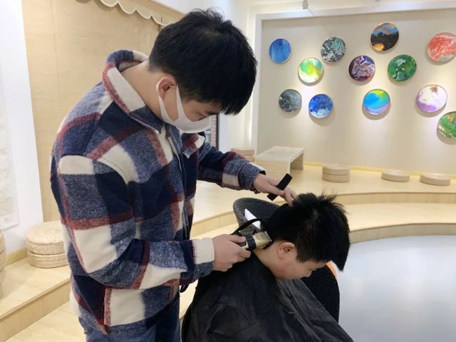 在得知师生需求后,杨浦校区艺术设计系党总支书记赵培忠书记、2021级动漫1班的李宗年和2021级动漫2班葛海洋同学;宝山校区经管系2020级工商管理2班孙世豪、刘翼以及2021级报关郭瑞同学积极报名,并化身理发师分别为两校区师生提供爱心理发服务。“理发师们”技术娴熟,一会功夫便让闻讯前来的师生形象焕然一新,“顾客”们纷纷给予好评,同时也向辛苦工作,提供志愿服务的师生们表示感谢。