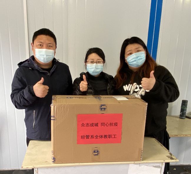 谈及捐赠,经管系一位党员老师代表说:“现在是防疫的特殊时期,在校园准封闭管理状态下,我们的校领导、众多一线教职工、学生志愿者们轮番坚守在学校的防疫岗位,努力守护师生的健康平安,大家都很感动。作为党员,履职尽责、响应号召,我们义不容辞,希望本次捐赠的N95口罩能为学校的防疫工作尽绵薄之力。后续学校有要求,我们必响应!我们相信,在大家的共同努力下,我们必将早日战胜疫情!”