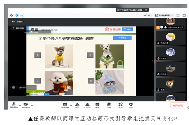 优化线上教学策略 ,“云”互动也精彩。为了取得更好的教学效果,学前教育系以学生为中心,积极探索与调整教学策略,努力使每一堂线上课都精彩。转战线上教学,学前教育系有些实训课如弹唱课、舞蹈课等教学活动开展遇到了不小的挑战,但老师们积极发挥好线上教学的优势,尽量地降低疫情对教学进度与学习效果的影响。