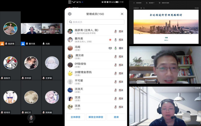 4月22日晚,建工系师生“云”相聚系列活动——全过程造价管理思路探讨讲座相聚腾讯会议云课堂,本次讲座邀请了上海建科造价咨询有限公司副总经理冯闻来交流分享,此次活动由建工系系主任瞿丹英主持,近150多名师生相聚云端。