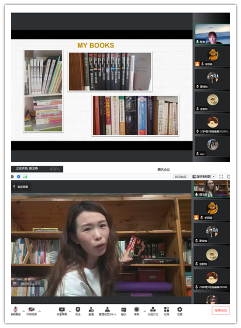 直播当日,正值第27个世界读书日,黄玉婷和陈斐老师向大家展示了家中藏有大量书籍的书房,并推荐了自己日常爱看的书籍。同时呼吁同学们一定要养成终身阅读的好习惯,大家可以根据自己的兴趣爱好有选择地进行阅读,虽然疫情阻挡了我们出行的脚步,但是读书可以带我们去诗和远方。