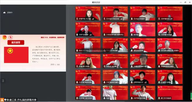 一段视频拉开大会帷幕,展现了我校青年志愿者们在上海疫情形势严峻下的靓丽底色。校团委专职团干部沈清老师宣布本次新团员名单,校团委组织部部长乔礼葆同学带领新老团员重温入团誓词。