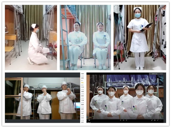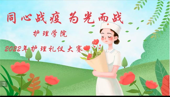 本次比赛项目包括护理礼仪风采展示和创意视频播放2块内容。参赛队伍分别从护士的礼仪着装,站姿、行姿、蹲姿、坐姿等方面进行了精彩的演绎。同时,各支队伍还精心准备了新颖的视频向在场评委老师和观众展示了“七步洗手法”、口罩的正确佩戴方式、创意手势舞等内容,与大家分享疫情期间如何开展科学且正确的自我防护,为这场抗议攻坚战加油鼓劲。各参赛队伍以优雅的姿态、规范的操作将现场的氛围一次次推向高潮,聊天室内掌声、喝彩声不断。