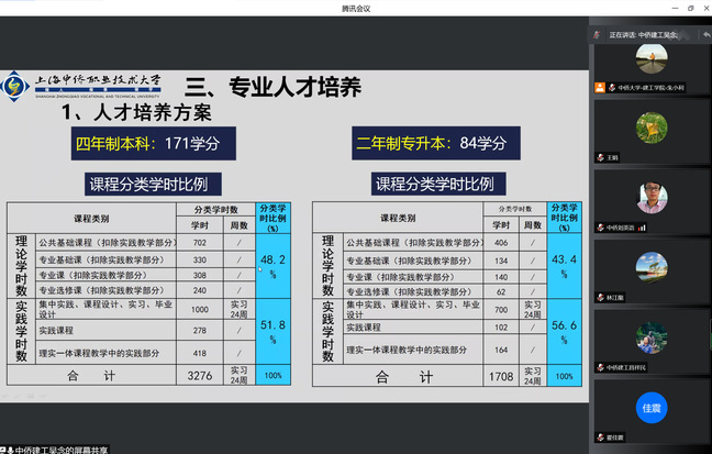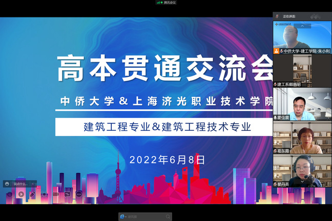 为进一步落实我校建筑工程技术专业与上海中侨职业技术大学建筑工程专业高本贯通申报工作,6月8日上午,在腾讯会议召开了交流会,中侨职业技术大学校长霍佳震、党委书记平杰,我校校长胡展飞、党委书记姜富明出席会议。两校相关职能部门负责人、院系党政负责人及骨干教师参加会议。本次交流会由中侨职业技术大学建工学院院长朱小利主持。