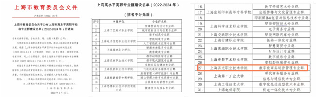经管系申报的“上海市高水平高职专业群建设”项目5月17日获得市教委的批准。“数字化商务运营管理专业群”涵盖大数据与会计、金融服务与管理、工商企业管理、电子商务、酒店管理与数字化运营五个专业。专业群建设坚持立德树人,引领商务运营管理类专业创新变革,支撑高端现代服务业转型升级,打造跨界现代化商务运营管理类人才培养基地。专业群立足上海,辐射长三角,培养适应数字化需求的商务运营管理类复合型技术技能型人才,助力上海“五个中心”、“四大品牌”建设及数字经济、数智化管理的行业转型发展,引领数智化时代现代服务管理类职业教育高质量发展。