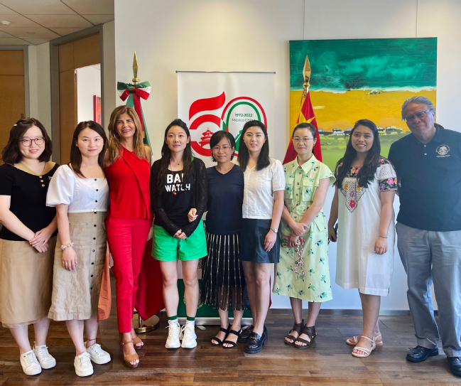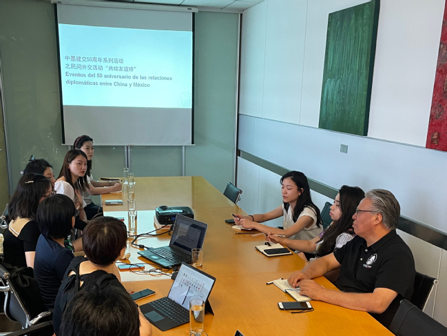 为庆祝中墨建交50周年,2022年9月1日,我校艺术设计系教师团队再次受邀前往墨西哥驻上海总领事馆。双方围绕“中墨五十周年徽章设计”和“共绘中墨友谊桥”等活动进行深入对接与交流。