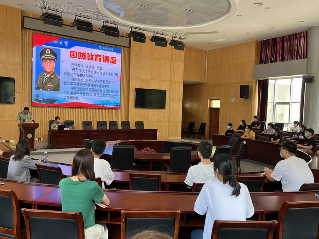 2022年9月6日上午,同济大学军教室、上海市学校国防教育协会高校分会会长张国清教授应邀来我校,在圆形会议室为2022年级新生上了一堂非常精彩的军事理论课,各院系新生代表参加了学习。