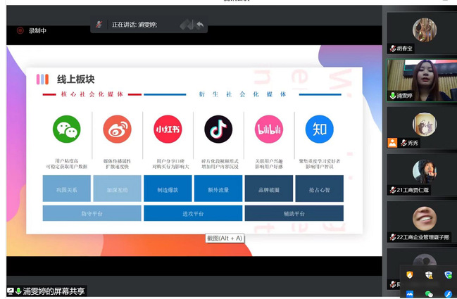 9月19日经管系“经管学堂”迎来了第二十六讲,特邀经管系校企合作单位、上海琛廷文化传媒有限公司董事长、上海市吴昌硕文化艺术基金会发展中心副主任浦雯婷进行了精彩分享,会上正式成立济光“琛廷基金”。本次分享是2022年上海市高水平高职专业群——上海济光职业技术学院“数字化商务运营管理专业群”产教联盟建设项目之一,学堂采用线上线下同步直播的形式,吸引了来自包括经管系、艺术设计系以及济光其他院系近200名学生同步参与并进行了积极互动。