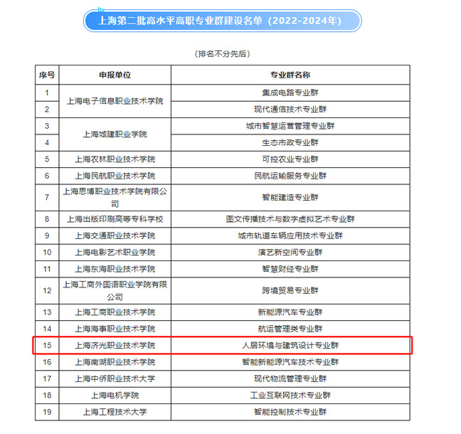 近日,上海市教育委员会公布第二批高水平高职专业群建设名单(2022-2024年),我校“人居环境与建筑设计”专业群入选。“人居环境与建筑设计”专业群由建筑设计、建筑室内设计、风景园林设计等同属土木建筑大类建筑设计类的专业组成,其核心均是人居环境。