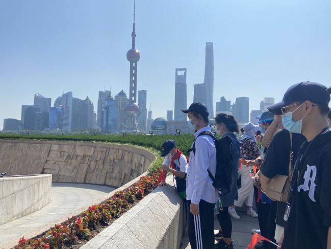 经管系师生一行将上海市人民英雄纪念塔作为此次活动的起点。巨大的下沉式广场环形的墙面镌刻着上海百年来的革命斗争历史,让师生们想起战争年代先辈革命之艰辛,更加珍惜今日和平年代的来之不易。师生们站在塔下,仰望塔顶,听着导游的讲解,师生们在脑海中浮现出一代又一代的共产党员前赴后继、披荆斩棘,用顽强奋斗和英勇牺牲换来了中华民族从站起来,富起来到强起来,实现了历史转变的画面。全体师生在纪念塔前朗读宣誓,向英雄烈士们鞠躬致敬,并默哀的一分钟。