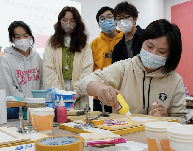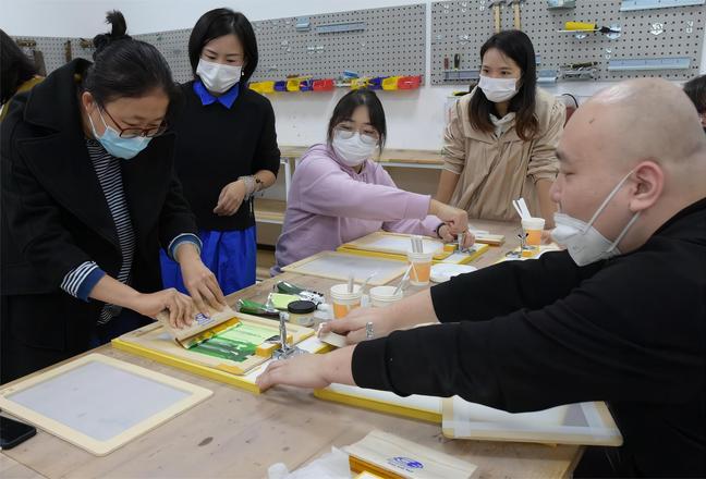 丝网版画也叫孔版画,是在西方兴起并进入艺术领域的新画种。丝网版画由于其极强的艺术表现力受到世界众多当代艺术大师的喜欢,也成为了世界版画的主流。“劳动创造幸福—艺术体验活动”第二场——丝网版画于2022年10月18日在杨浦校区南实训楼一楼顺利举行。本次活动由我校关工委指导团“五老”成员之一、设计创意学院院长阴佳教授,同济大学卢璐老师,设计创意学院邓佳睿老师指导。