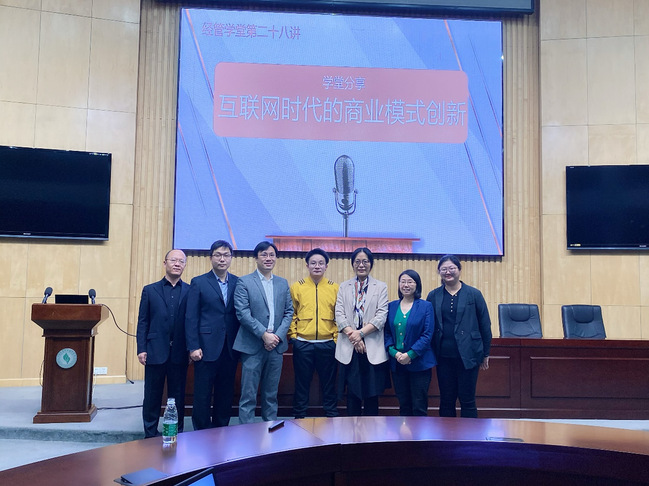 讲座结束后,经济管理学院院长张迺英、学院党总支书记胡春宝、副院长林俊及相关的老师一同与主讲人进行了交流并合影留念。