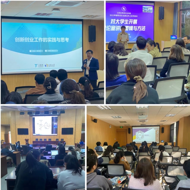 11月2日,同济大学学生就业指导中心信息咨询部主任朱华珍以“高校辅导员如何开展生涯教育”为题,从生涯教育的背景和意义、生涯教育面临的新问题、生涯教育系列活动的设计几个方面阐述了高校辅导员开展生涯教育的意义和方法。11月3日,同济创新创业控股有限公司副总经理戴大勇以“创新创业工作的实践与思考”为题,介绍了上海市创业基金会的设立背景、发展情况、服务体系,介绍了同济大学科技园的创新人才的培养和科技创业的孵化,分享了经典的创业案例,带来了关于创新创业工作的一些思考。11月4日,华东政法大学教授张海燕以“学生心理危机的识别和应对”为题,介绍了心理危机管理的事前预备、干预原则,应急或非应急的心理危机过程性处置的干预原则以及心理危机后干预措施。11月7日,同济大学外国语学院团委书记、专职辅导员刘佳煊以“如何对大学生开展理论宣讲的逻辑与方法”为题,介绍了对大学生开展理论宣讲的逻辑和方法,以上海高校辅导员素质能力大赛为例,分析了理论宣讲的应然与必然,分享了如何准备辅导员谈心谈话比赛和理论宣讲比赛。11月9日,同济大学学生处副处长王小莉围绕“高校‘一站式’学生社区综合管理模式的探索与实践”,结合“新三同”理念的同济实践经验介绍了社区管理方面的具体做法,为我校的社区管理提供了宝贵的经验。