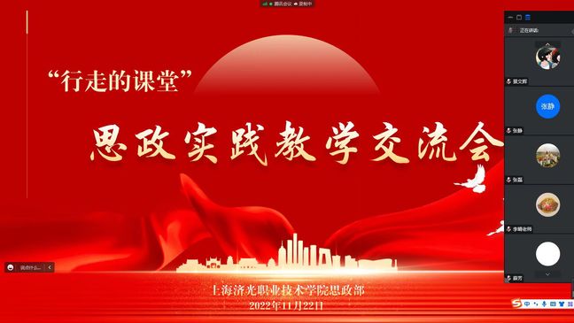 11月22日下午,思政部举办“行走的课堂”思政实践教学线上交流会,思政课教师、第六期青马学习班指导老师参加了本次会议,会议邀请了教育部整体规划大中小思政课程项目组成员张磊教师分享实践教学经验,会议由思政部教师张贝贝主持。
