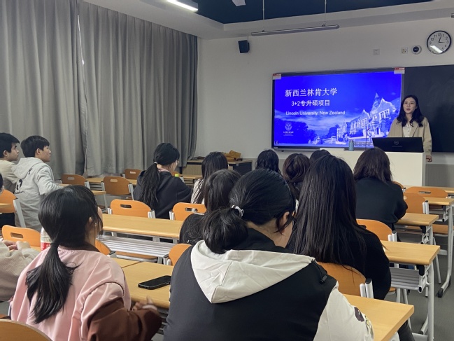 为提升学生的国际化视野,扩宽学生海外升学渠道,由校外事办和经济管理学院共同组织的“林肯大学3+2专升硕”项目宣讲会,3月16日在教学楼408教室和线上腾讯会议室举行。宣讲会特邀新西兰林肯大学驻上海项目办负责人胡伟平老师,来给学生做专场介绍。